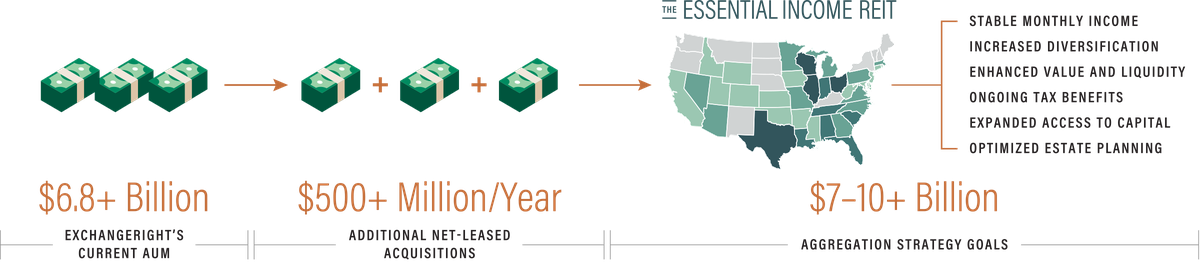 We believe that investors deserve an investment strategy that is structured to provide them with stable cash flow, capital preservation, and value-add return potential in the face of uncertain economic and financial conditions. ExchangeRight manages a large, diversified, and growing portfolio of net-leased properties backed by investment-grade credit tenants that operate successfully in the necessity retail and healthcare space and that we believe will be attractive and marketable for a larger aggregated sale, merger, listing, and/or initial public offering.